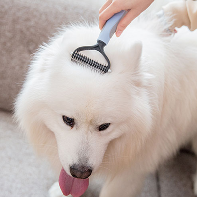 给宠物定期梳理,可以有效减少掉毛,选择适合宠物的梳子或刷子,及时清除脱落的皮屑和死皮,减少患皮肤病几率的同时预防毛发打结,还能对皮肤起到按摩的作用,促进血液循环,维持毛发健康,同时还可以增进家长与毛孩之间的感情哦!
